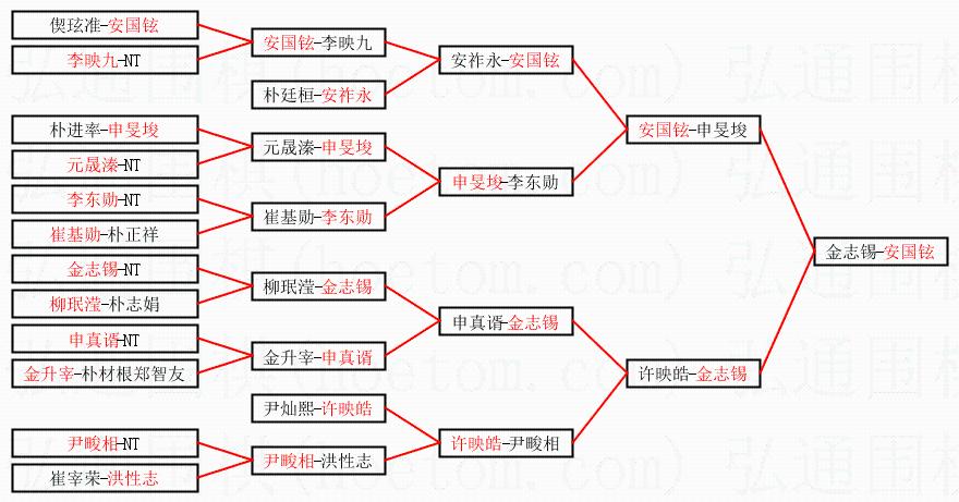 | 1.安国铉获得冠军,金志锡获得亚军。决赛比分:安国铉3:2金志锡。棋局: | ||