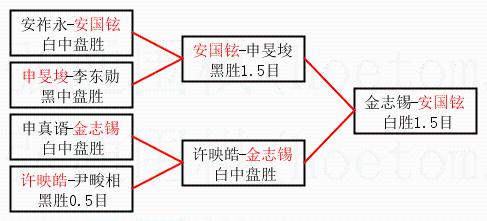 | 2.上半区半决赛安国铉获胜, 比分:安国铉 1:0 申旻埈。棋局: | ||