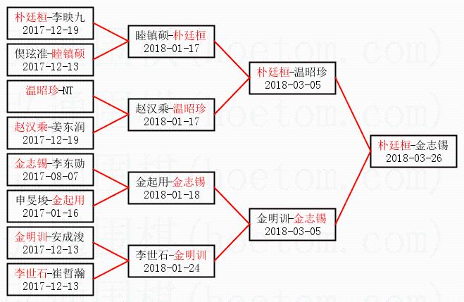1.朴廷桓获得冠军,金志锡获得亚军。决赛比分:朴廷桓2:0金志锡。棋局: