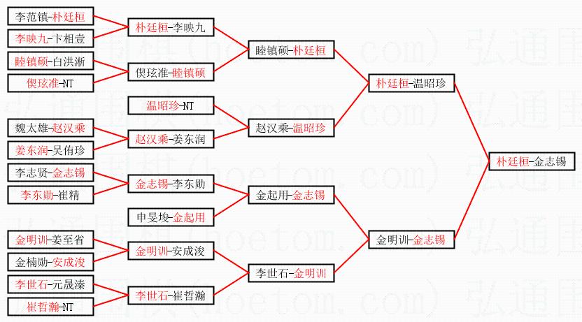 1.朴廷桓获得冠军,金志锡获得亚军。决赛比分:朴廷桓2:0金志锡。棋局: