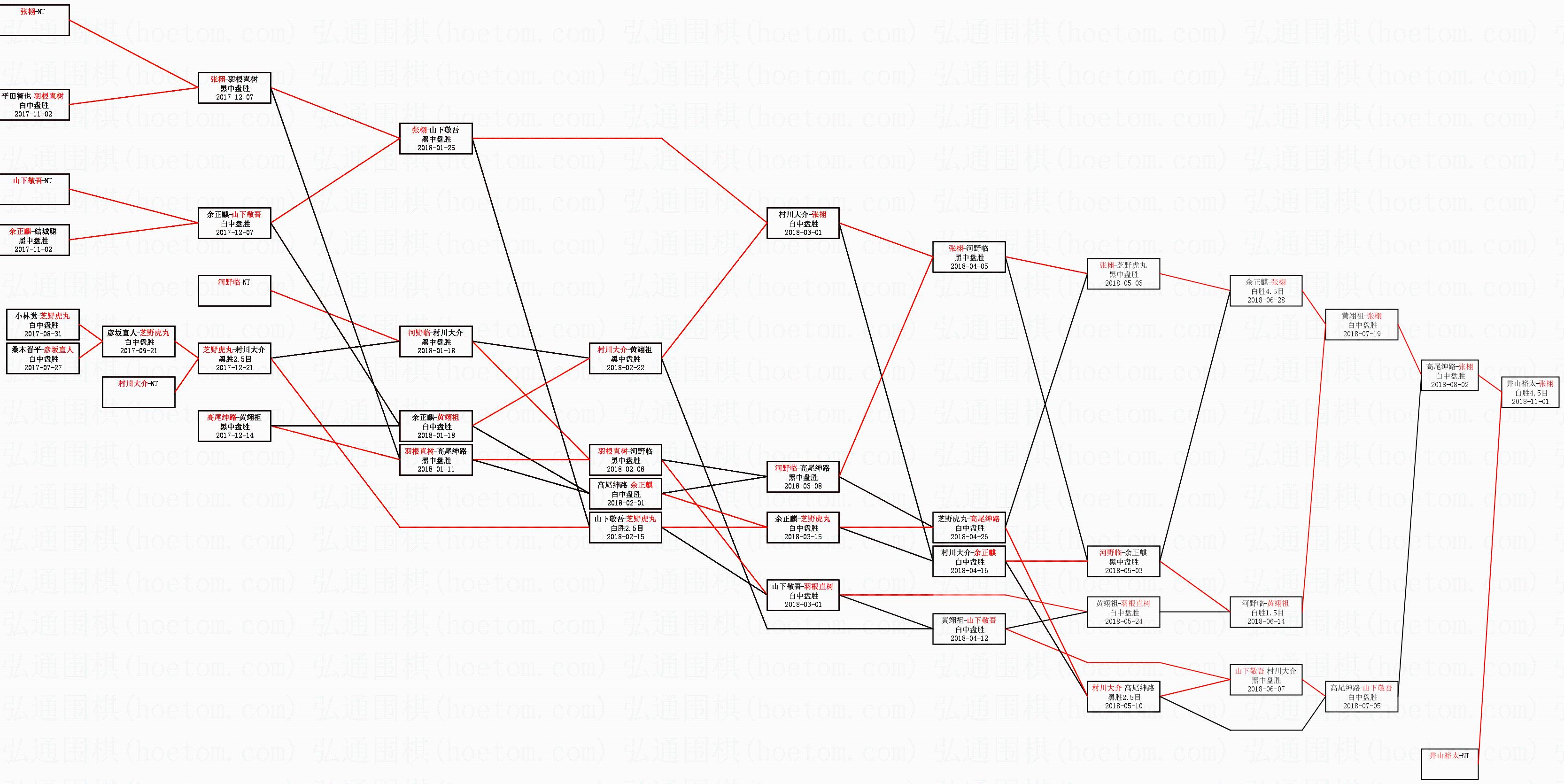 | 1.张栩获得冠军,井山裕太获得亚军。决赛比分:张栩4:3井山裕太。棋局: | ||