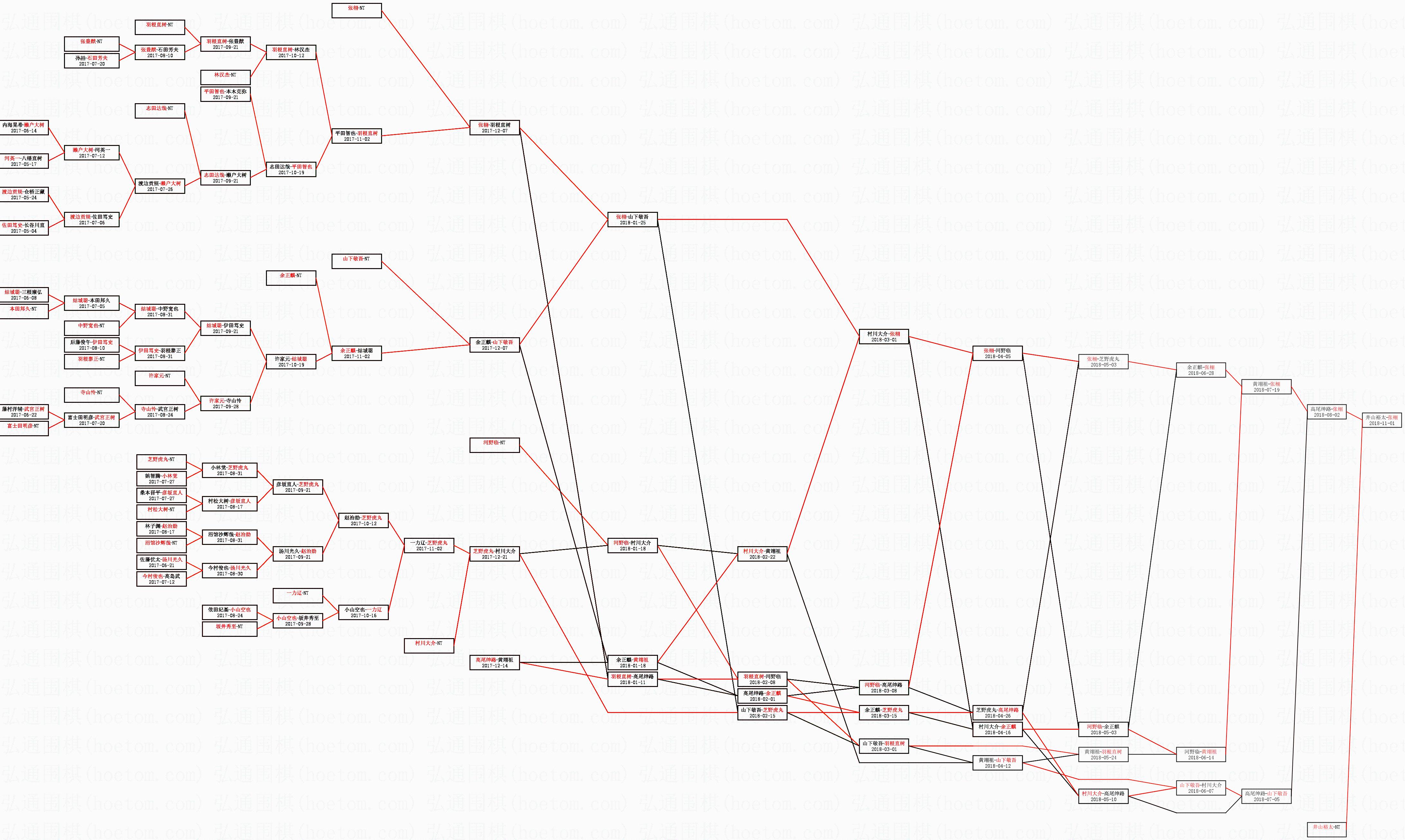 | 1.张栩获得冠军,井山裕太获得亚军。决赛比分:张栩4:3井山裕太。棋局: | ||