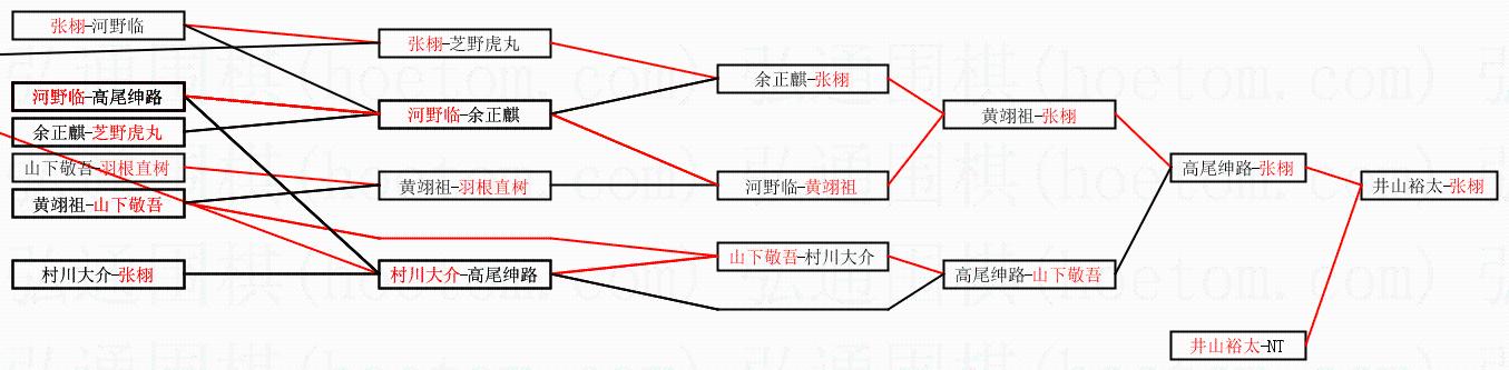 | 1.张栩获得冠军,井山裕太获得亚军。决赛比分:张栩4:3井山裕太。棋局: | ||