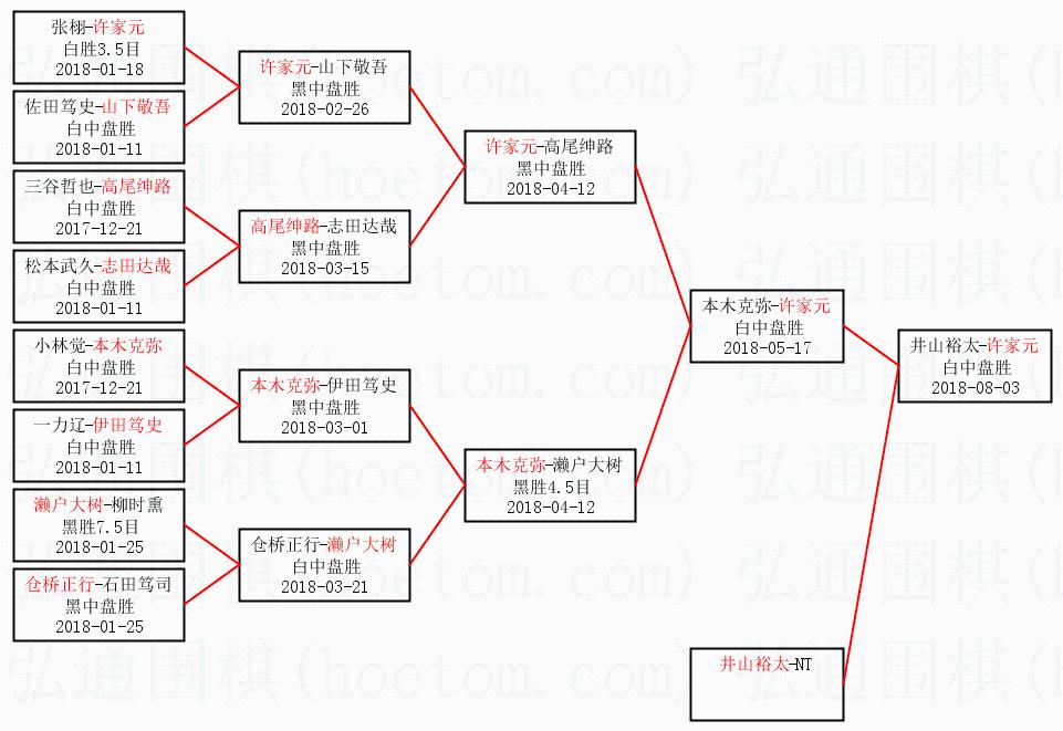 1.许家元获得冠军,井山裕太获得亚军。决赛比分:许家元3:0井山裕太。棋局: