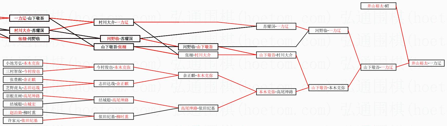 1.井山裕太获得冠军,一力辽获得亚军。决赛比分:井山裕太4:0一力辽。棋局: