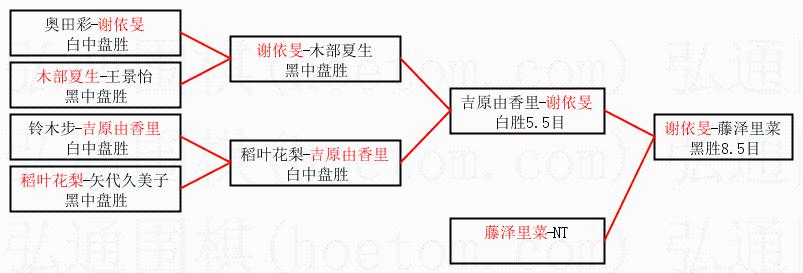 | 2.上半区半决赛谢依旻获胜, 比分:谢依旻 1:0 吉原由香里。棋局: | ||