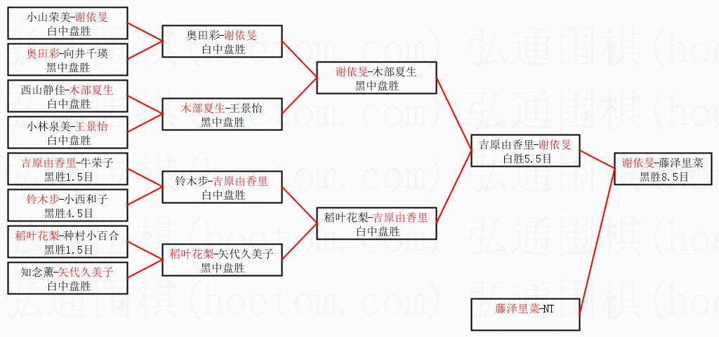 | 2.上半区半决赛谢依旻获胜, 比分:谢依旻 1:0 吉原由香里。棋局: | ||
