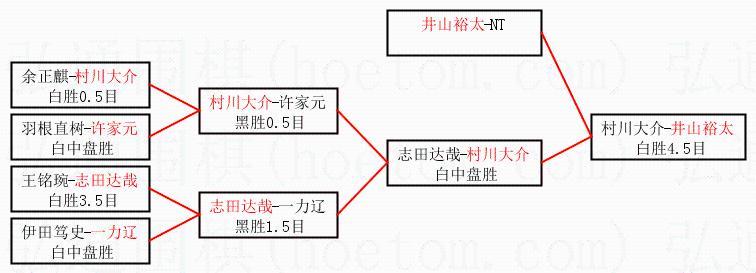 1.井山裕太获得冠军,村川大介获得亚军。决赛比分:井山裕太3:0村川大介。棋局: