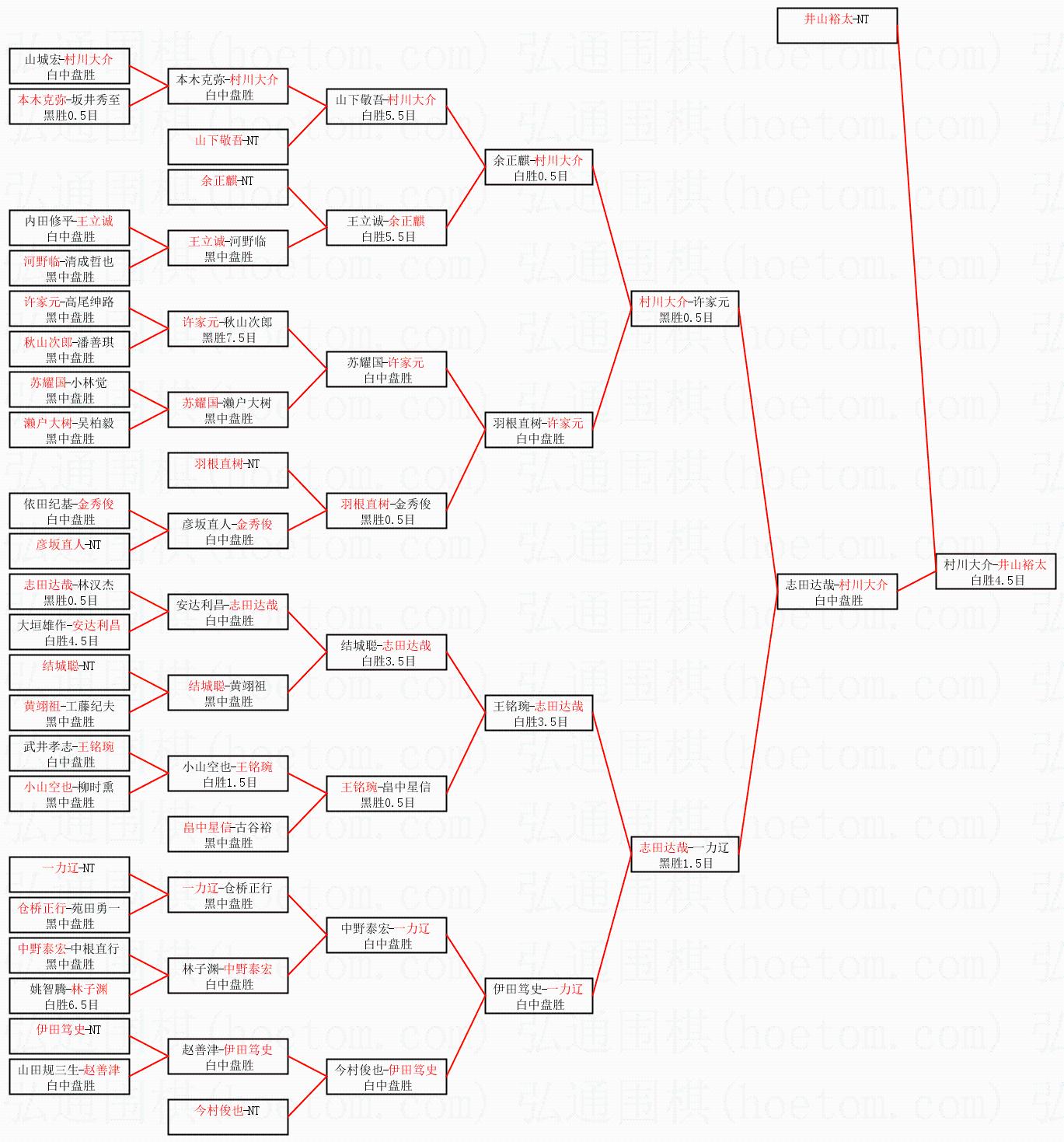 | 1.井山裕太获得冠军,村川大介获得亚军。决赛比分:井山裕太3:0村川大介。棋局: | ||