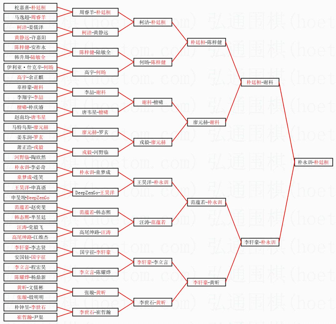 | 2.上半区半决赛朴廷桓获胜, 比分:朴廷桓 2:1 谢科。棋局: | ||