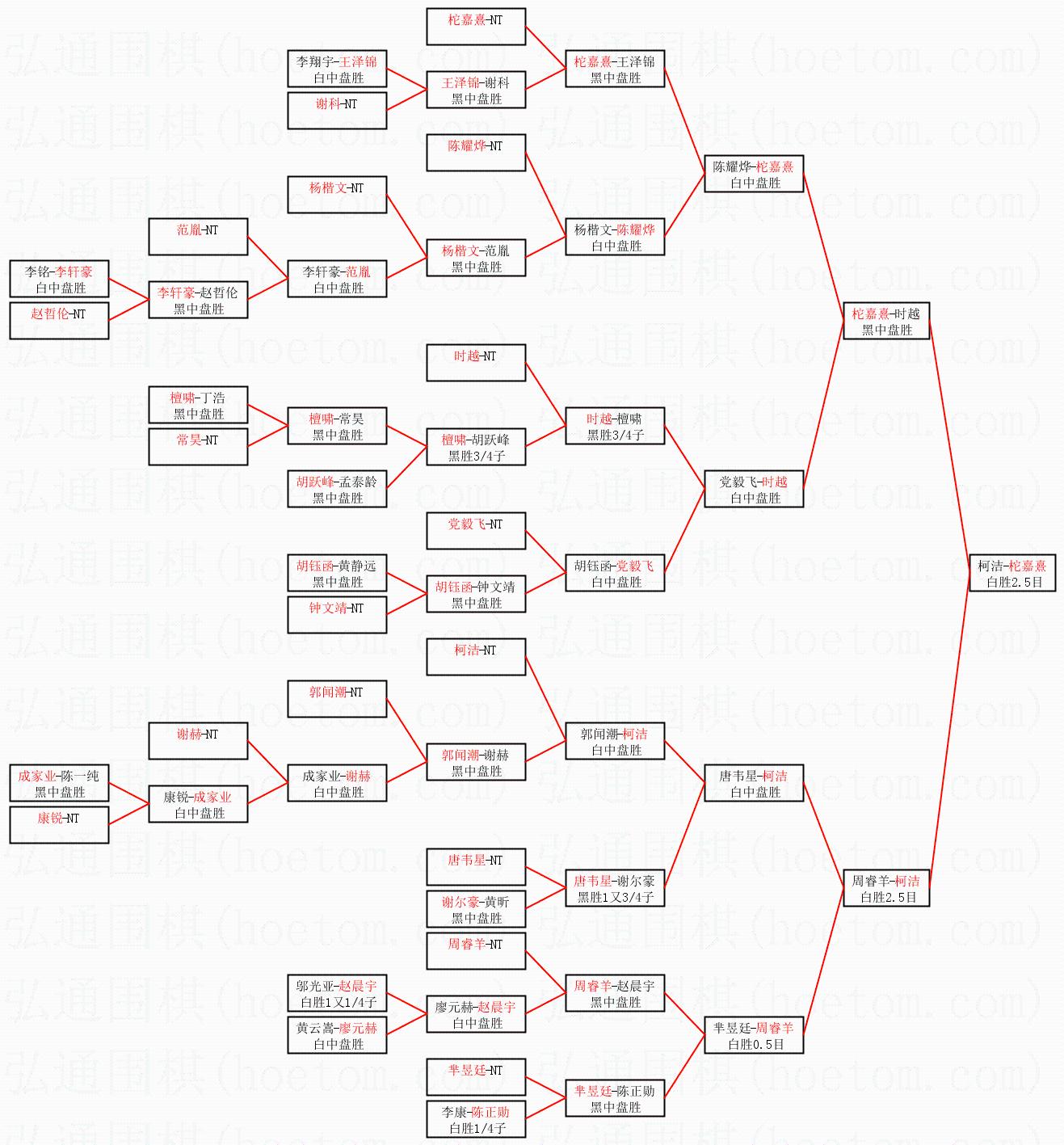 2.上半区半决赛柁嘉熹获胜, 比分:柁嘉熹 1:0 时越。棋局:
