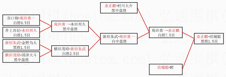 1.余正麒获得冠军,结城聪获得亚军。决赛比分:余正麒2:0结城聪。棋局: