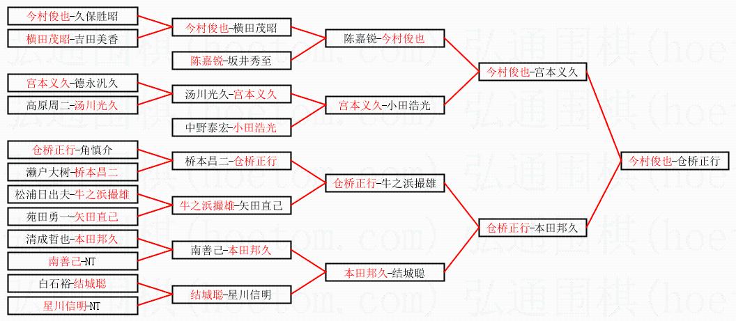 1.今村俊也获得冠军,仓桥正行获得亚军。决赛比分:今村俊也2:1仓桥正行。棋局: