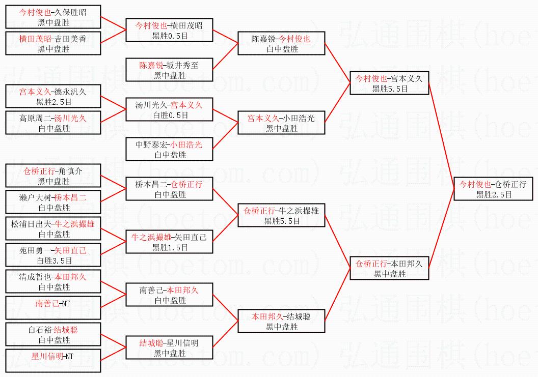 | 1.今村俊也获得冠军,仓桥正行获得亚军。决赛比分:今村俊也2:1仓桥正行。棋局: | ||