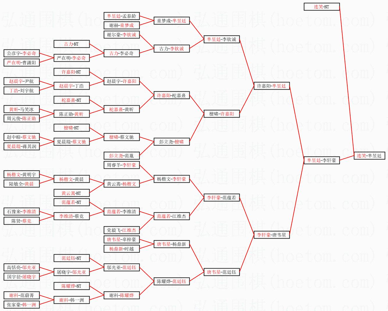 1.连笑获得冠军,芈昱廷获得亚军。决赛比分:连笑2:1芈昱廷。棋局: