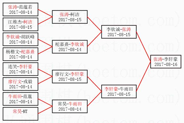 1.张涛获得冠军,李轩豪获得亚军。决赛比分:张涛1:0李轩豪。棋局: