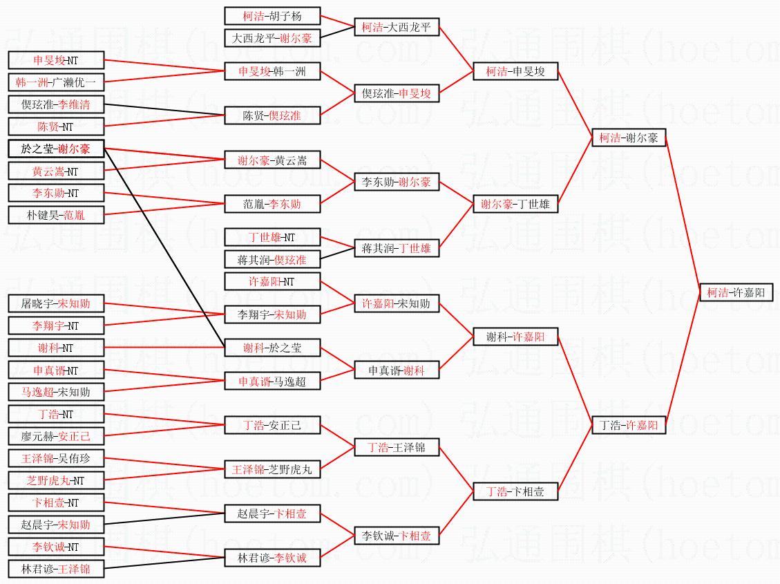 2.上半区半决赛柯洁获胜, 比分:柯洁 1:0 谢尔豪。棋局: