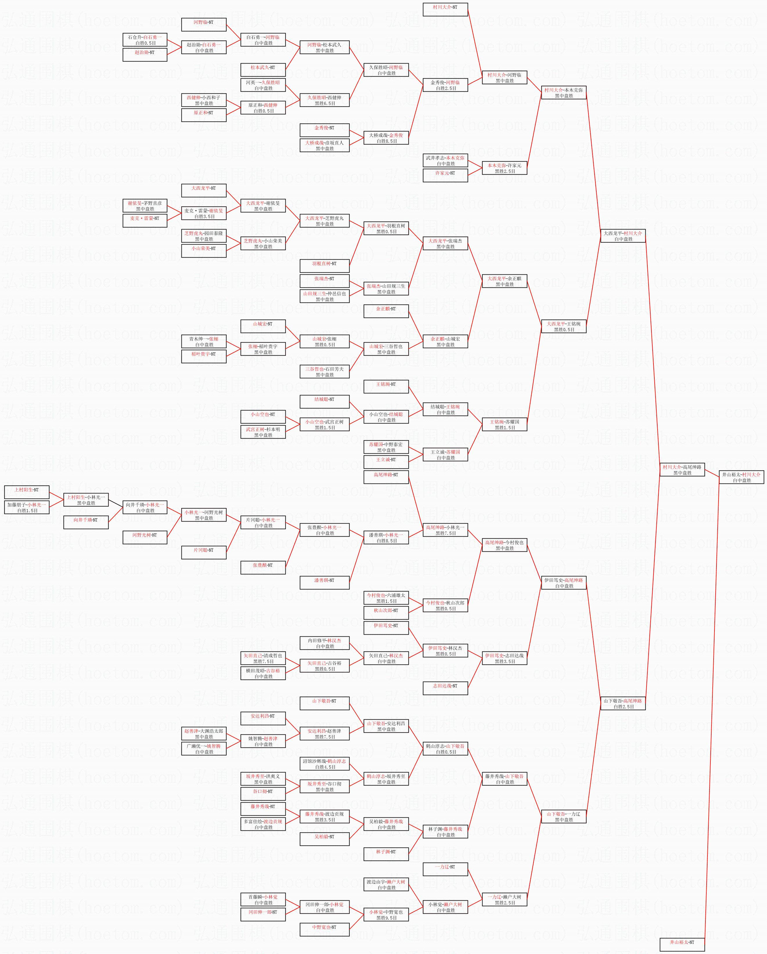 1.村川大介获得冠军,井山裕太获得亚军。决赛比分:村川大介3:1井山裕太。棋局: