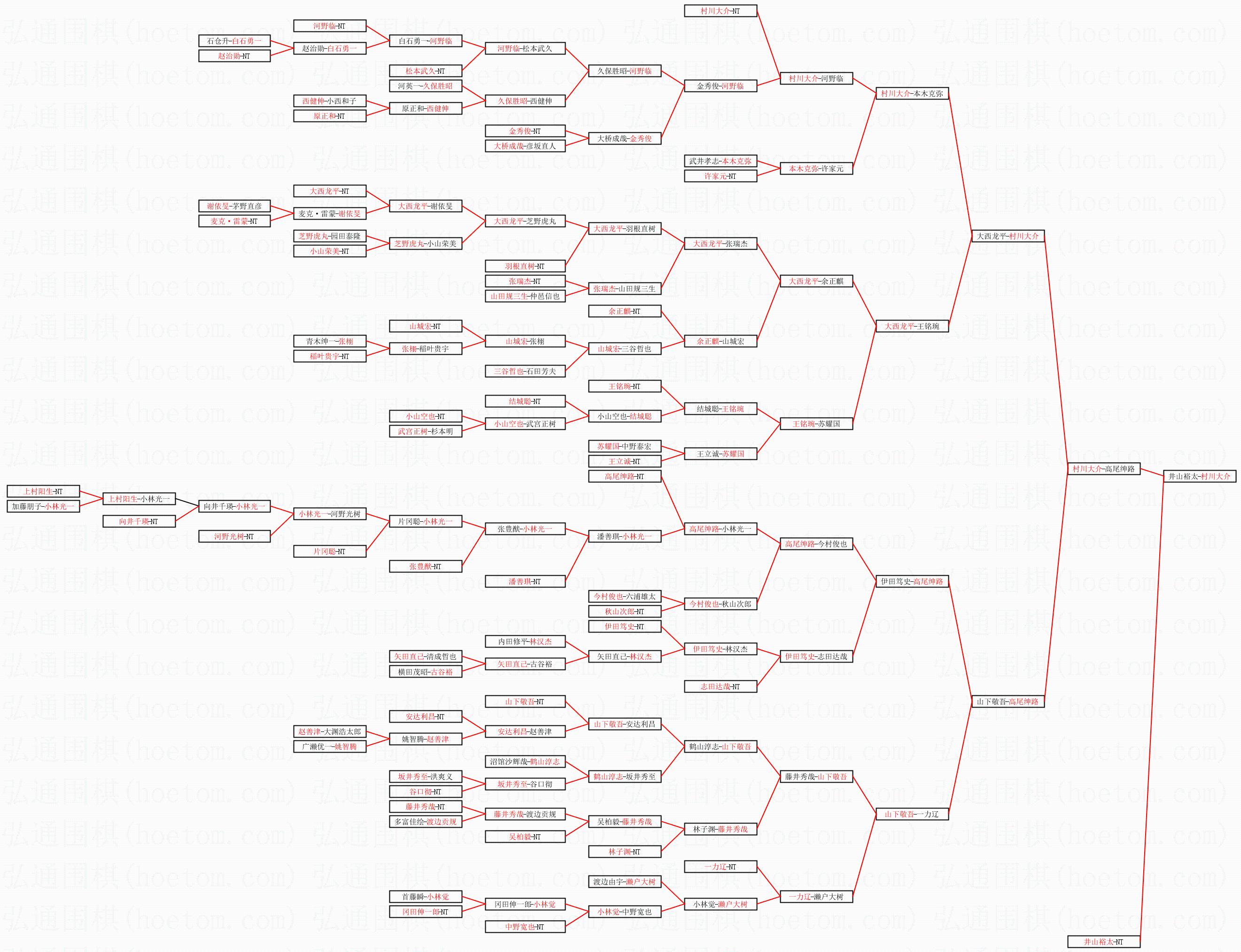 1.村川大介获得冠军,井山裕太获得亚军。决赛比分:村川大介3:1井山裕太。棋局: