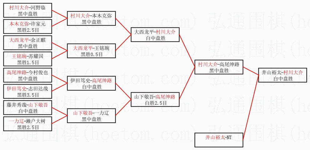| 1.村川大介获得冠军,井山裕太获得亚军。决赛比分:村川大介3:1井山裕太。棋局: | ||
