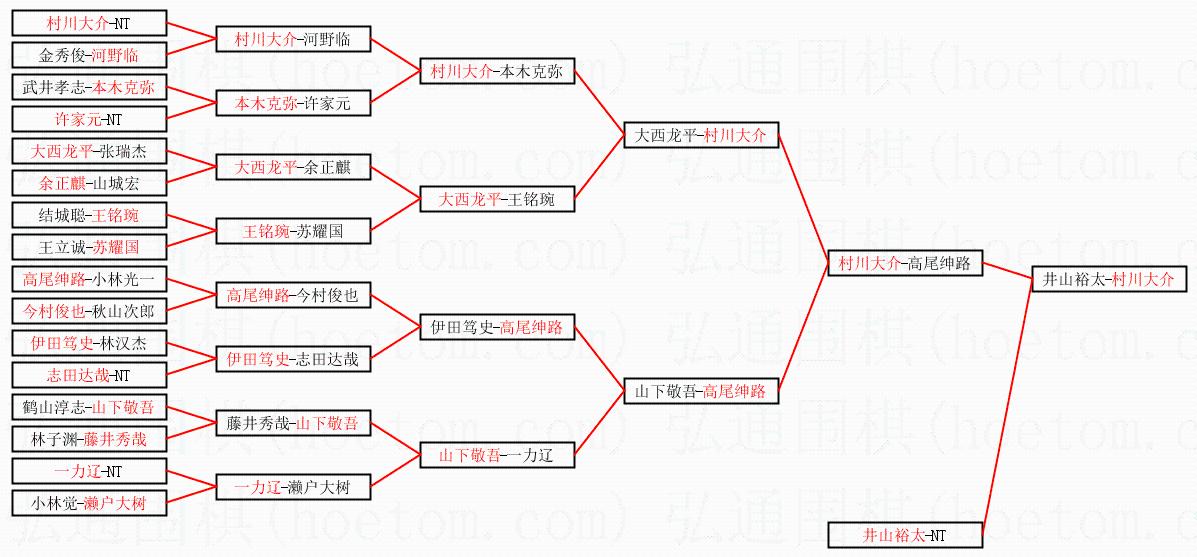 | 1.村川大介获得冠军,井山裕太获得亚军。决赛比分:村川大介3:1井山裕太。棋局: | ||