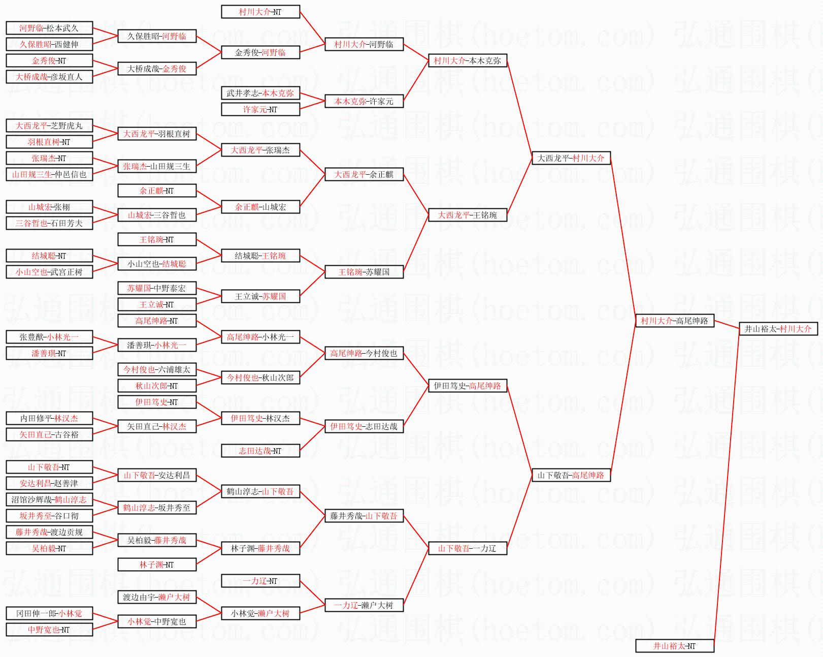 | 1.村川大介获得冠军,井山裕太获得亚军。决赛比分:村川大介3:1井山裕太。棋局: | ||