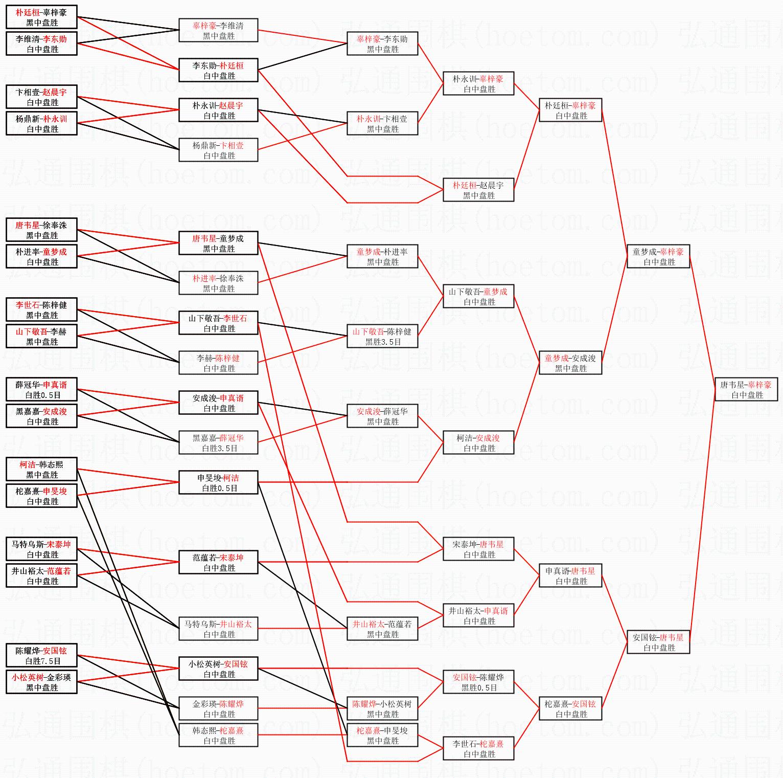 | 3.下半区半决赛唐韦星获胜,比分:唐韦星2:1安国铉。棋局: | ||