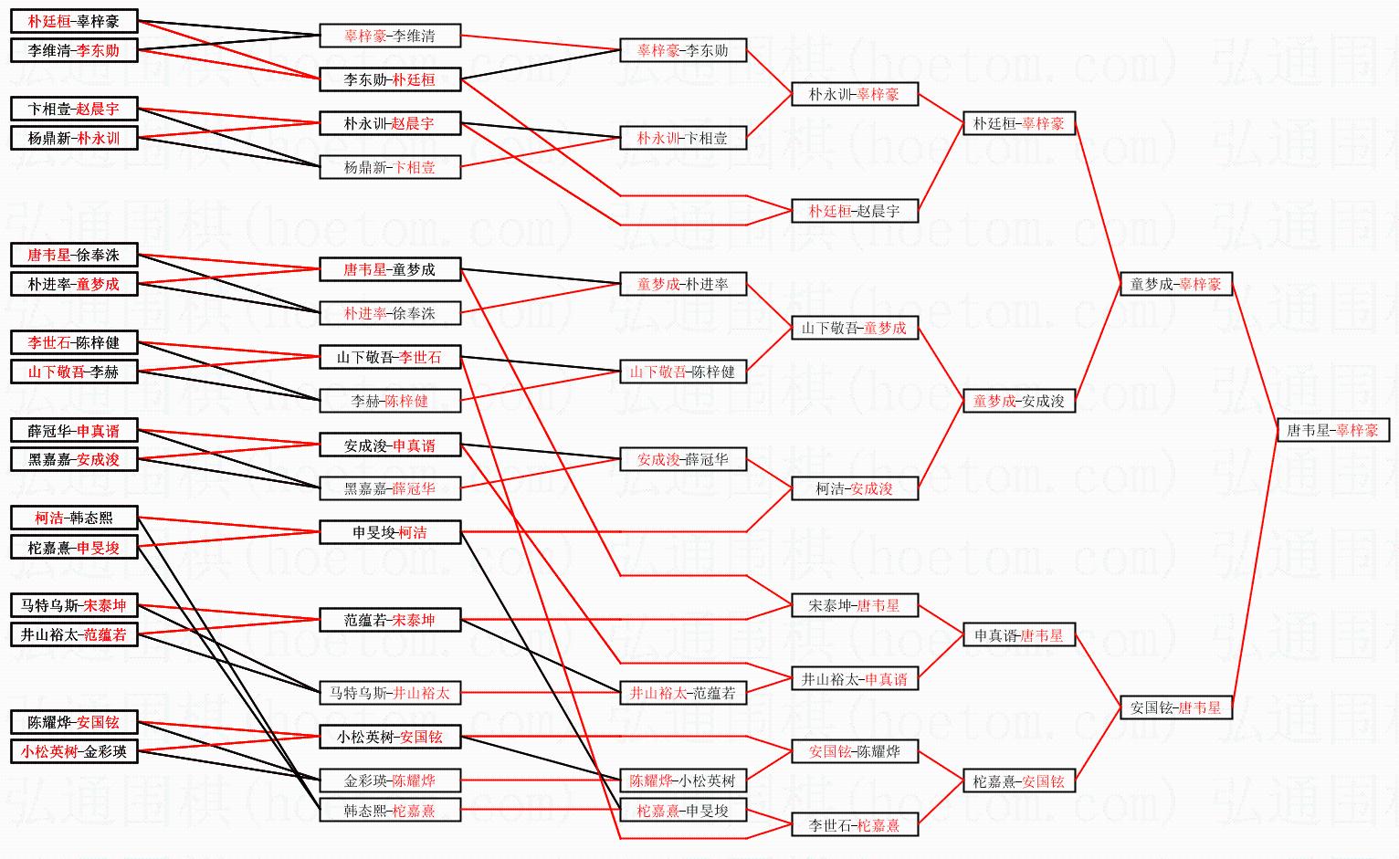 | 3.下半区半决赛唐韦星获胜,比分:唐韦星2:1安国铉。棋局: | ||