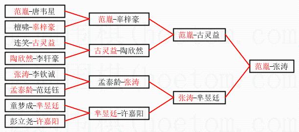 1.范胤获得冠军,张涛获得亚军。决赛比分:范胤1:0张涛。棋局:
