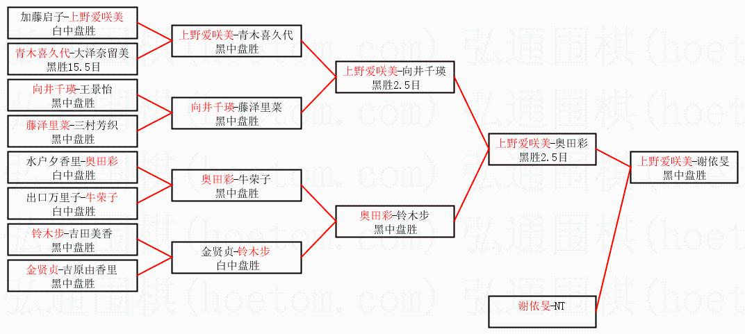 1.上野爱咲美获得冠军,谢依旻获得亚军。决赛比分:上野爱咲美2:0谢依旻。棋局: