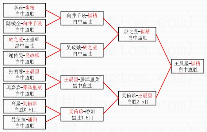 2.上半区半决赛崔精获胜, 比分:崔精 1:0 於之莹。棋局: