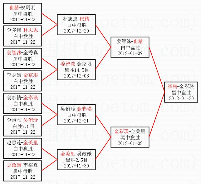 1.崔精获得冠军,金彩瑛获得亚军。决赛比分:崔精2:0金彩瑛。棋局:
