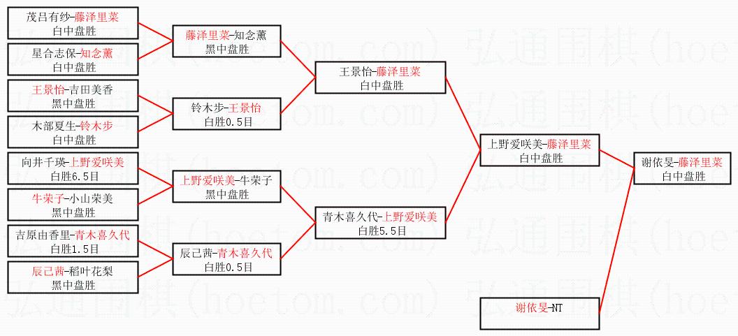 1.藤泽里菜获得冠军,谢依旻获得亚军。决赛比分:藤泽里菜3:1谢依旻。棋局: