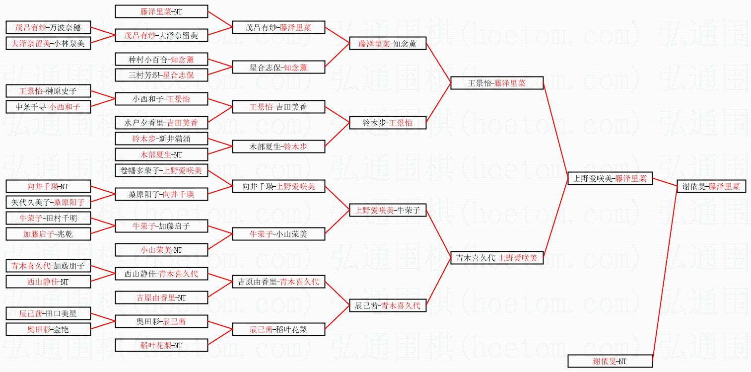 | 1.藤泽里菜获得冠军,谢依旻获得亚军。决赛比分:藤泽里菜3:1谢依旻。棋局: | ||
