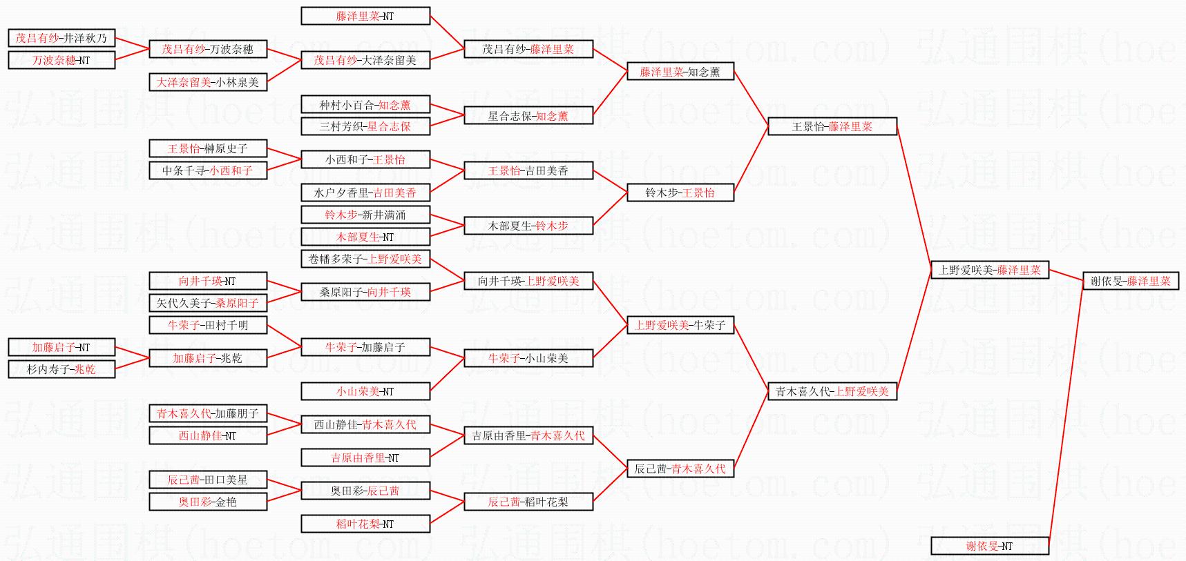 | 1.藤泽里菜获得冠军,谢依旻获得亚军。决赛比分:藤泽里菜3:1谢依旻。棋局: | ||