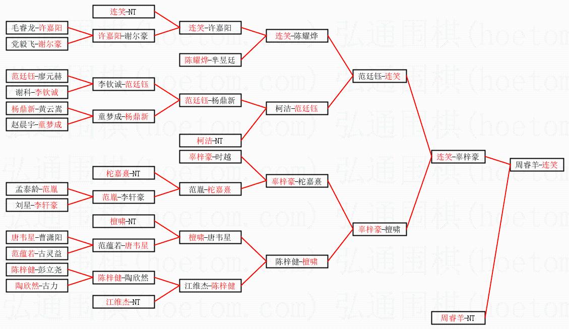 1.连笑获得冠军,周睿羊获得亚军。决赛比分:连笑2:1周睿羊。棋局: