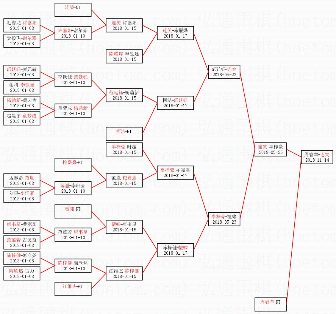 1.连笑获得冠军,周睿羊获得亚军。决赛比分:连笑2:1周睿羊。棋局: