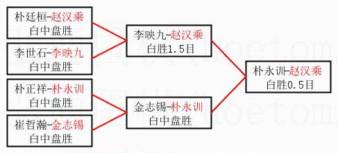 | 1.赵汉乘获得冠军,朴永训获得亚军。决赛比分:赵汉乘2:1朴永训。棋局: | ||