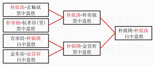 | 2.上半区半决赛朴炫洙获胜, 比分:朴炫洙 1:0 朴常镇。棋局: | ||