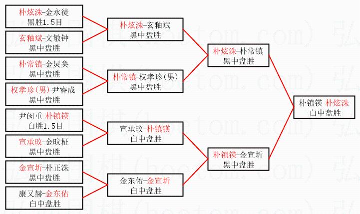 | 2.上半区半决赛朴炫洙获胜, 比分:朴炫洙 1:0 朴常镇。棋局: | ||