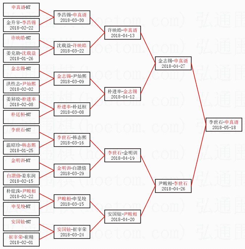 1.申真谞获得冠军,李世石获得亚军。决赛比分:申真谞3:2李世石。棋局: