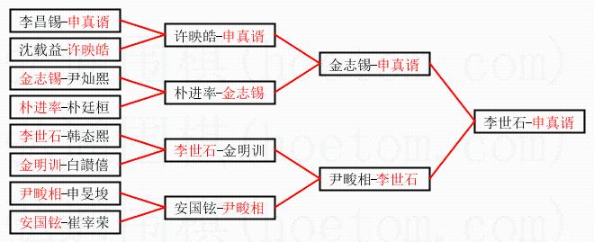 | 1.申真谞获得冠军,李世石获得亚军。决赛比分:申真谞3:2李世石。棋局: | ||