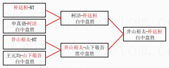 2.上半区半决赛朴廷桓获胜, 比分:朴廷桓 1:0 柯洁。棋局: