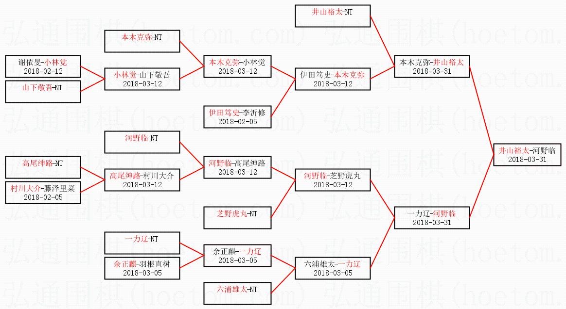 2.上半区半决赛井山裕太获胜, 比分:井山裕太 1:0 本木克弥。棋局: