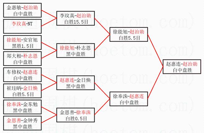 3.下半区半决赛赵惠连获胜,比分:赵惠连1:0徐奉洙。棋局:
