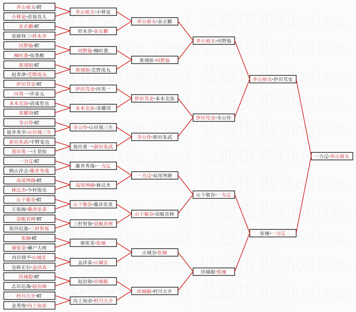 1.井山裕太获得冠军,一力辽获得亚军。决赛比分:井山裕太1:0一力辽。棋局: