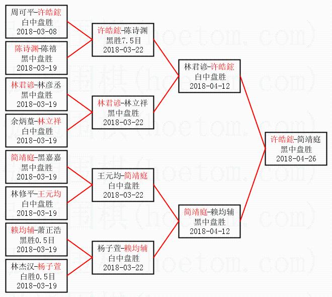 1.许皓鋐获得冠军,简靖庭获得亚军。决赛比分:许皓鋐2:0简靖庭。棋局: