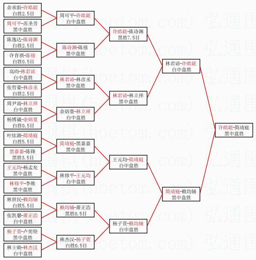 1.许皓鋐获得冠军,简靖庭获得亚军。决赛比分:许皓鋐2:0简靖庭。棋局: