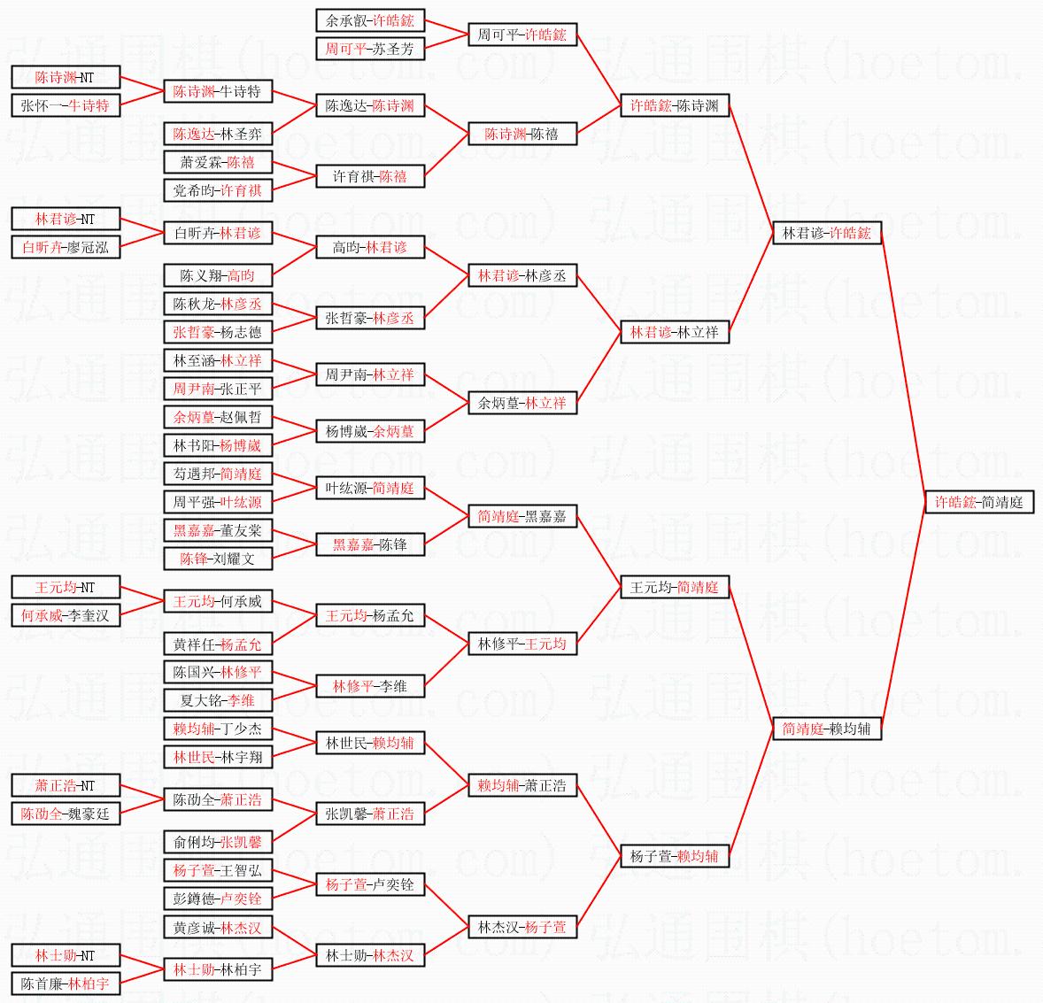 1.许皓鋐获得冠军,简靖庭获得亚军。决赛比分:许皓鋐2:0简靖庭。棋局: