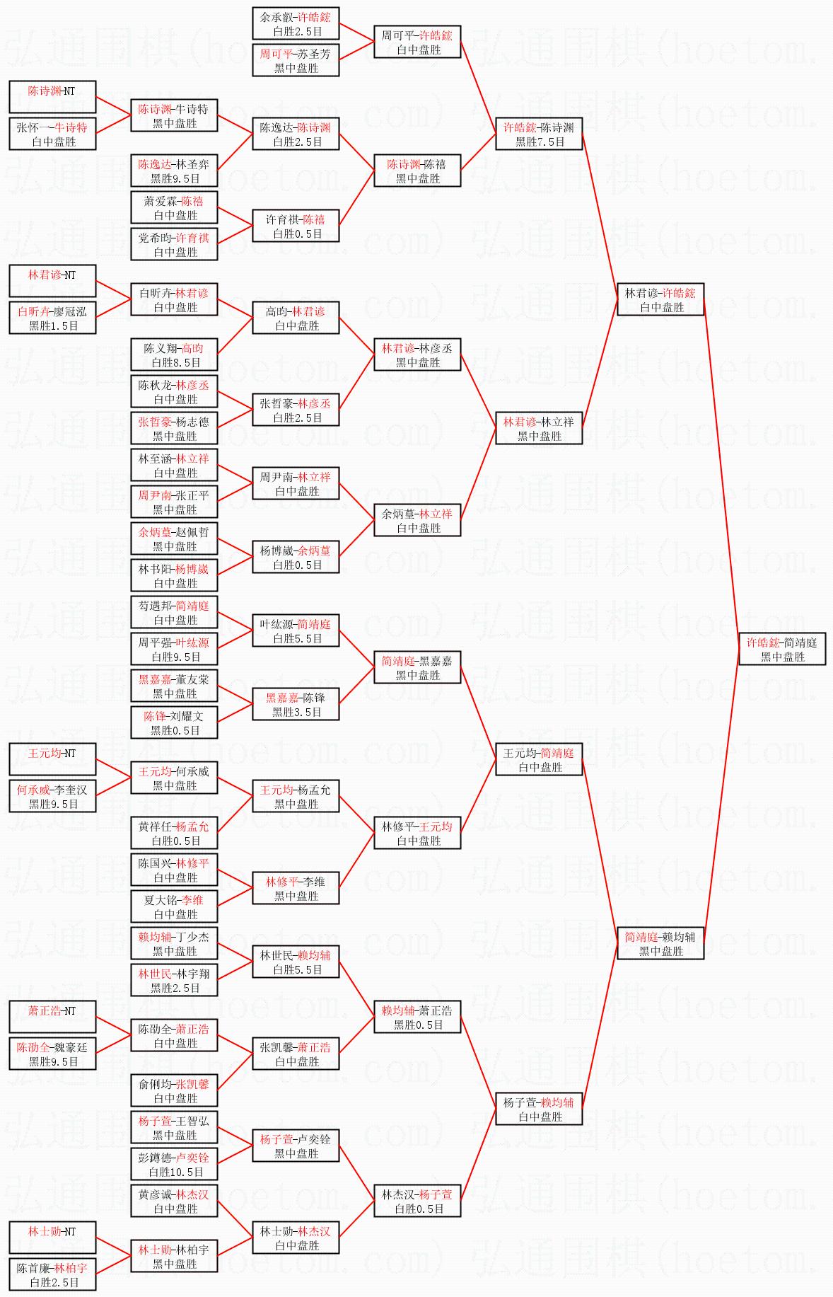 1.许皓鋐获得冠军,简靖庭获得亚军。决赛比分:许皓鋐2:0简靖庭。棋局: